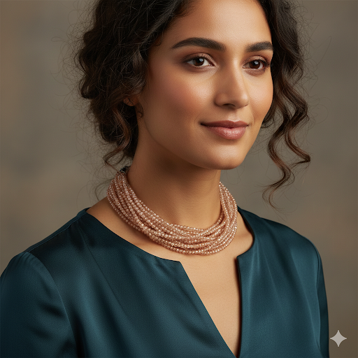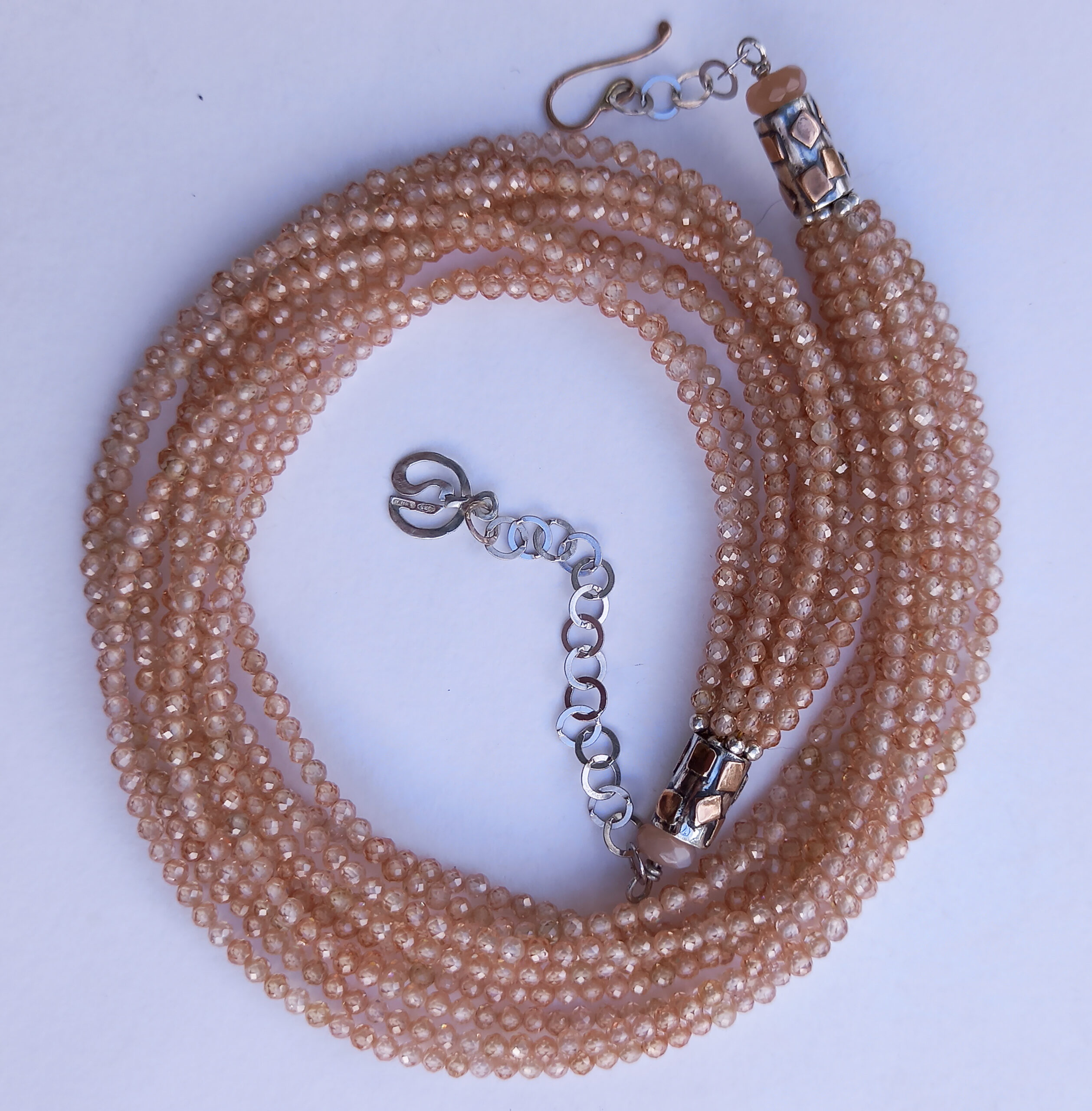 dieci fili di zirconi champagne, molto luminosi, montati con argento 925 e oro rosa 9ct.