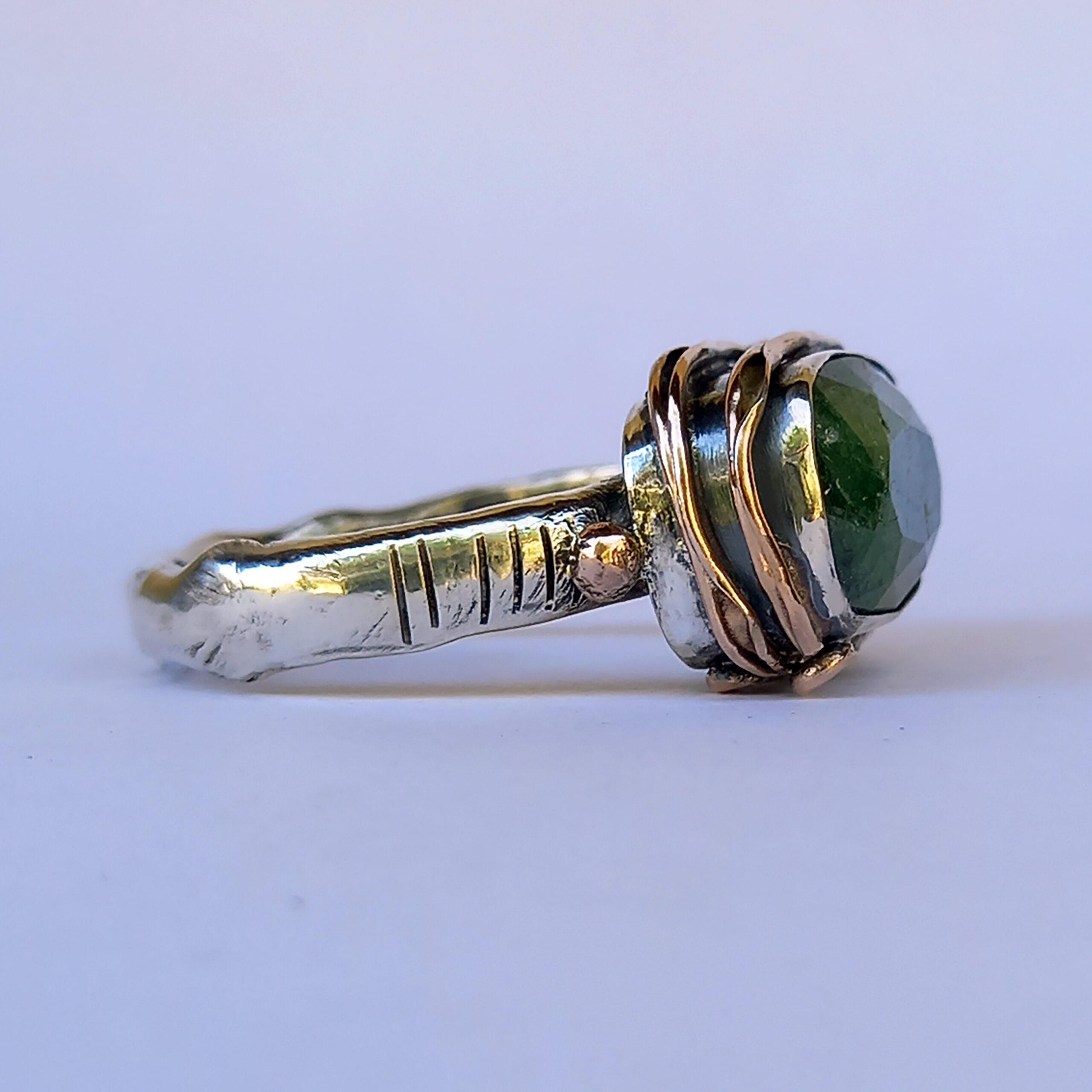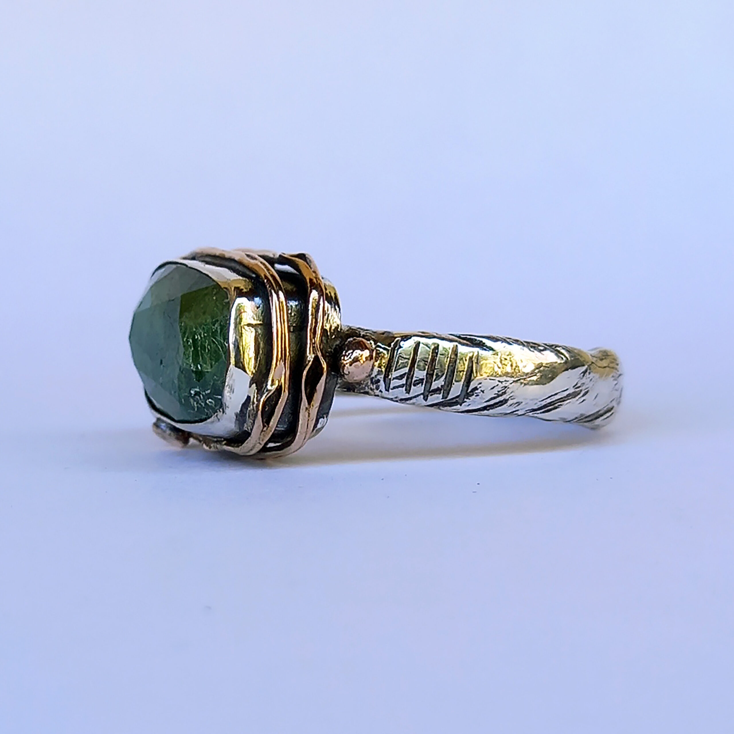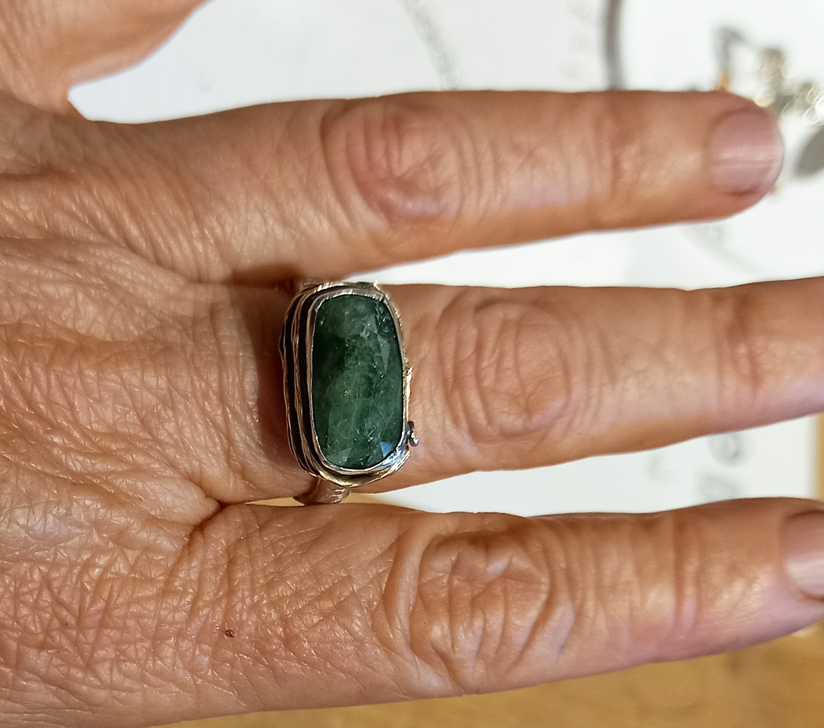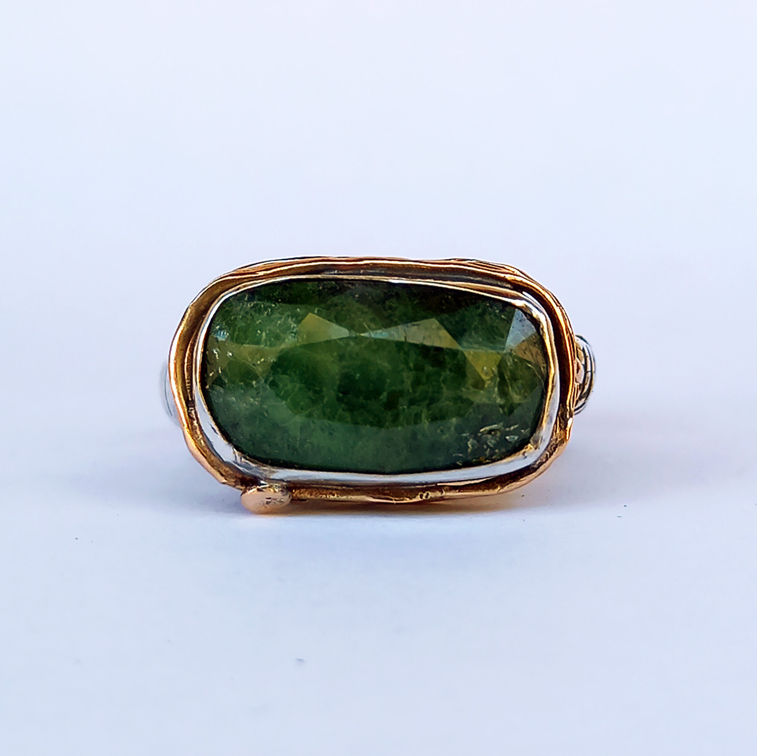 anello in argento 925, oro rosa 9ct e tsavorite verde rettangolare.
